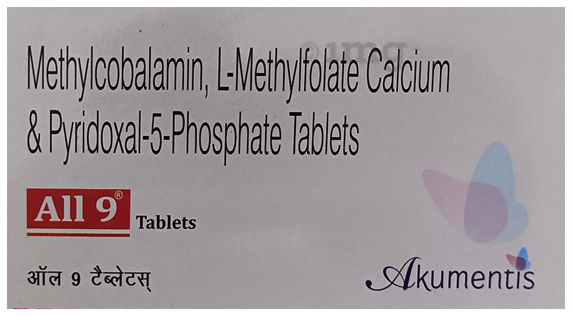 All 9 Tablet is a nutritional supplement that contains a combination of essential vitamins and minerals, such as vitamins B12, B6, and folate. These nutrients are important for various bodily functions, including healthy nerve function, cognitive function, and fetal growth and development during pregnancy. All 9 Tablet is used to manage and prevent nutritional deficiencies that can lead to health problems.