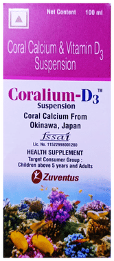 Coralium-D3 Tablet has a balanced mix of calcium carbonate and vitamin D3. Calcium is necessary for the normal functioning of nerves, cells, muscles, and bones. If there is insufficient calcium in the blood, the body will take calcium from bones, thereby weakening bones. Vitamin D3 helps the body absorb calcium and phosphorus and promotes bone health.