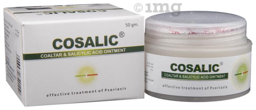 The Cosalic ointment contains 6% coal tar and 3% Salicylic acid.