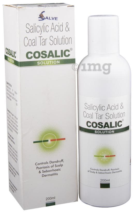 Cosalic Solution is a topical medicine containing salicylic acid and coal tar. It is used for managing various skin disorders of the scalp such as psoriasis, seborrhoeic dermatitis, dandruff, etc.