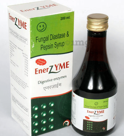 Enerzyme Syrup is a digestive aid. It is used for managing indigestion. It contains diastase and pepsin, which are digestive enzymes. These enzymes help your body to break down complex nutrients such as protein, carbohydrates and fats into simpler forms.
