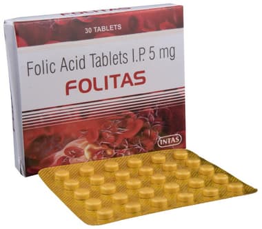 Folvite Tablets contains a rich formulation of complex organic compounds known as Folic Acid (Vitamin B9). Folic Acid is an essential water-soluble Vitamin for nucleotide biosynthesis and remethylation of homocysteine. This folic acid supplement tablet helps in the production of red blood cells (RBCs), synthesis of DNA, and boosts heart health.
