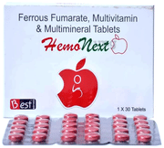 Hemonext Tablet contains Ferrous Ascorbate eq. to Elemental Iron (100mg), Folic Acid (1.5mg) and Zinc Sulphate Monohydrate (61.8mg) as active ingredients.