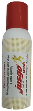 Jusgo Spray (applied to the skin) is used to relieve pain associated with recent muscle or joint injuries such as sprains, strains, or sports injuries. It also relieves pain from rheumatoid arthritis, osteoarthritis etc.