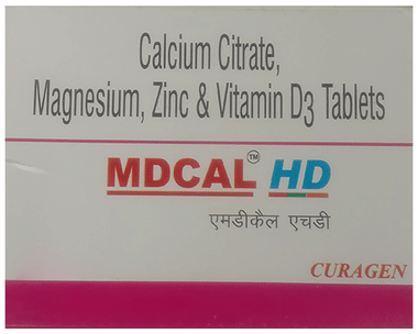MD-CAL tablet is a combination of calcium with vitamin D3(cholecalciferol) and minerals like magnesium and it is used as bone joint supplement.