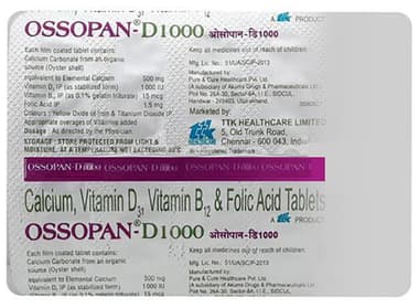 Ossopan Plus Tablet has a balanced mix of Calcium carbonate and Vitamin D3. Calcium plays a very important role in the body. It is necessary for normal functioning of nerves, cells, muscle, and bone. If there is not enough calcium in the blood, then the body will take calcium from bones, thereby weakening bones.Thus intake of Calcium is necessary to keep the bones strong. Vitamin D helps the body absorb calcium and phosphorus. Having the right amounts of Vitamin D, Calcium, and Phosphorus is important for building and keeping strong bones.