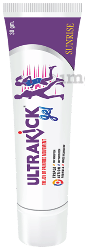 Ultrakick Gel is a pain-relief gel that provides fast and long-lasting relief from pain. It helps alleviate joint pain, backache, muscle stiffness, swelling and inflammation due to musculoskeletal disorders (sprains, strains, tendonitis, bursitis, hand, neck, shoulder pain and sciatica). It is lightweight and absorbed quickly, and provides long-lasting relief from the pain.