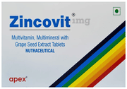 Zincovit tablet is a nutritional supplement that has a combination of grape seed extract and essential vitamins and minerals. It is used to prevent and treat vitamin and mineral deficiencies, boost immunity, and improve an individual's overall health. It also provides nutritional support to patients suffering from various acute and chronic diseases.